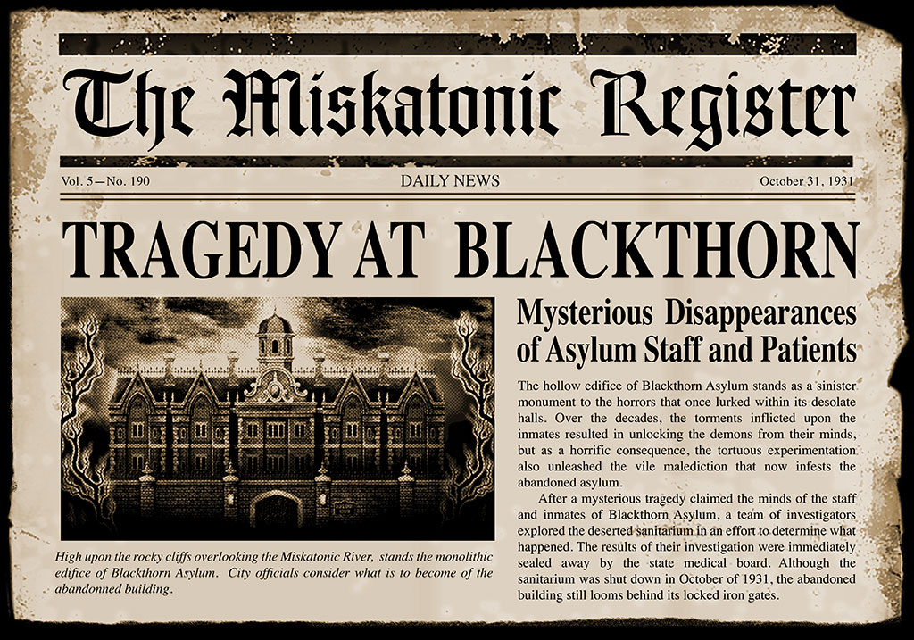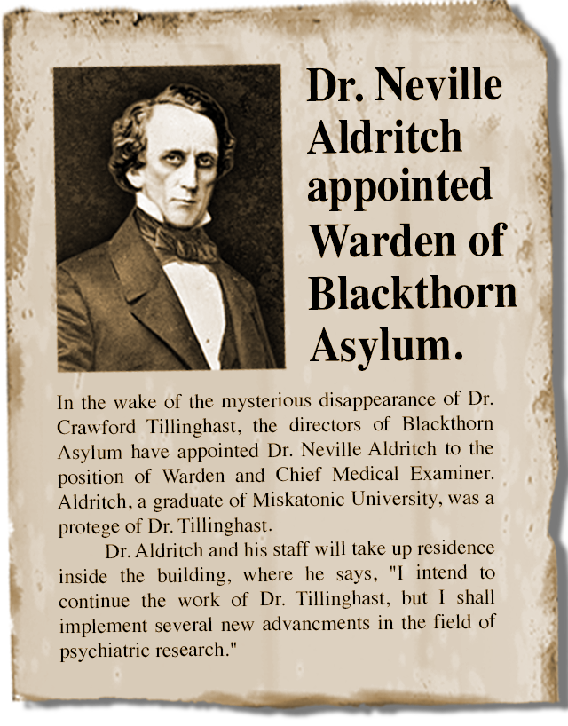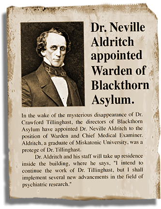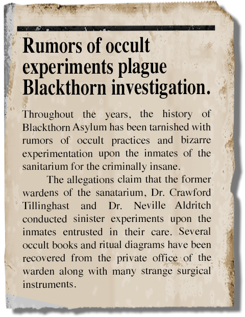 Investigate the Doctor's Office View the Recently Committed Buy the Blackthorn Asylum CD