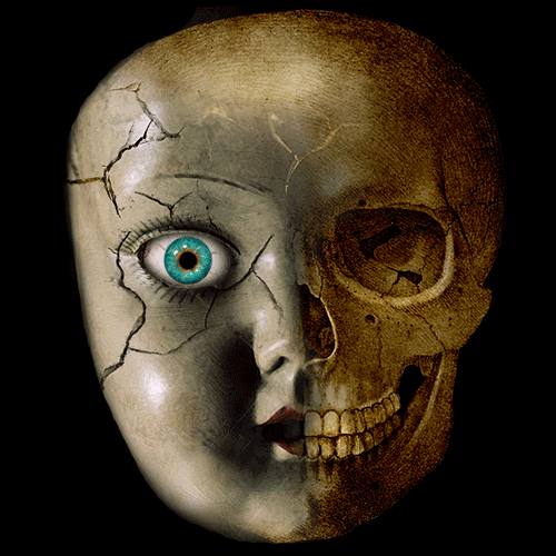 You follow the ghostly voice to the nursery where an old doll house sits upon a central table. The house is an exact replica of the mansion, and a lone doll stands before the front door. Its tiny hands hold a miniature skeleton key. Other dolls line the shelves watching you with eyes that glisten in the darkness. Their porcelain faces, cracked and weathered by time, seem remotely familiar.